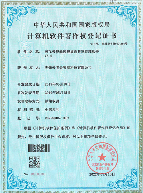 云飞云-智能远程桌面共享管理软件著作登记认证
